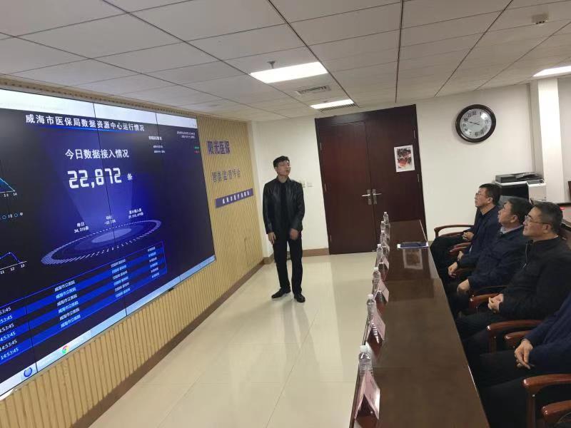 调研期间,调研组一行前往济南、威海两市医保局、经办机构、智能监控中心,深入交流了医保领域城乡整合、DRGs付费管理、药品招采平台搭建及信息化建设等方面工作的开展情况,并召开了座谈会。