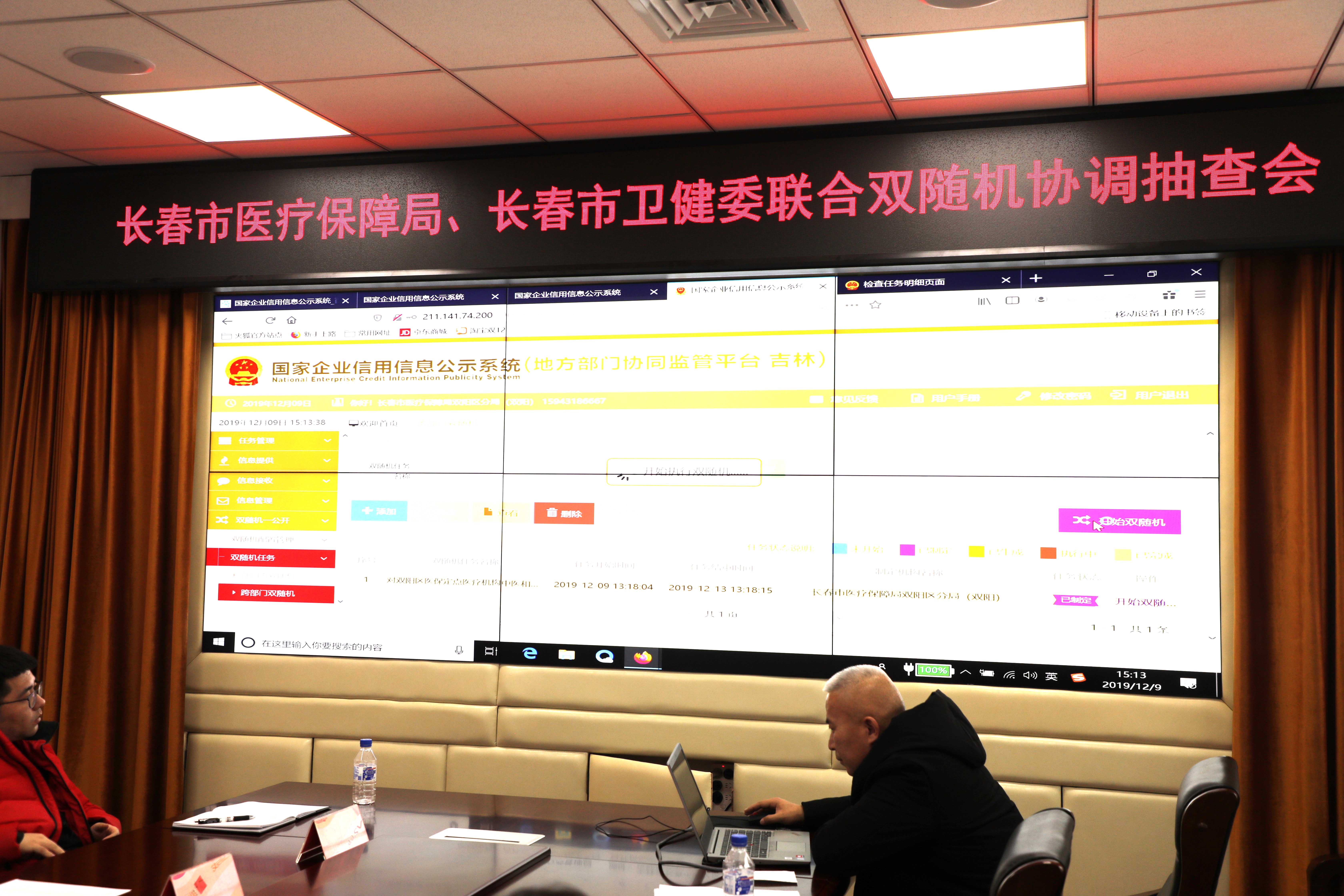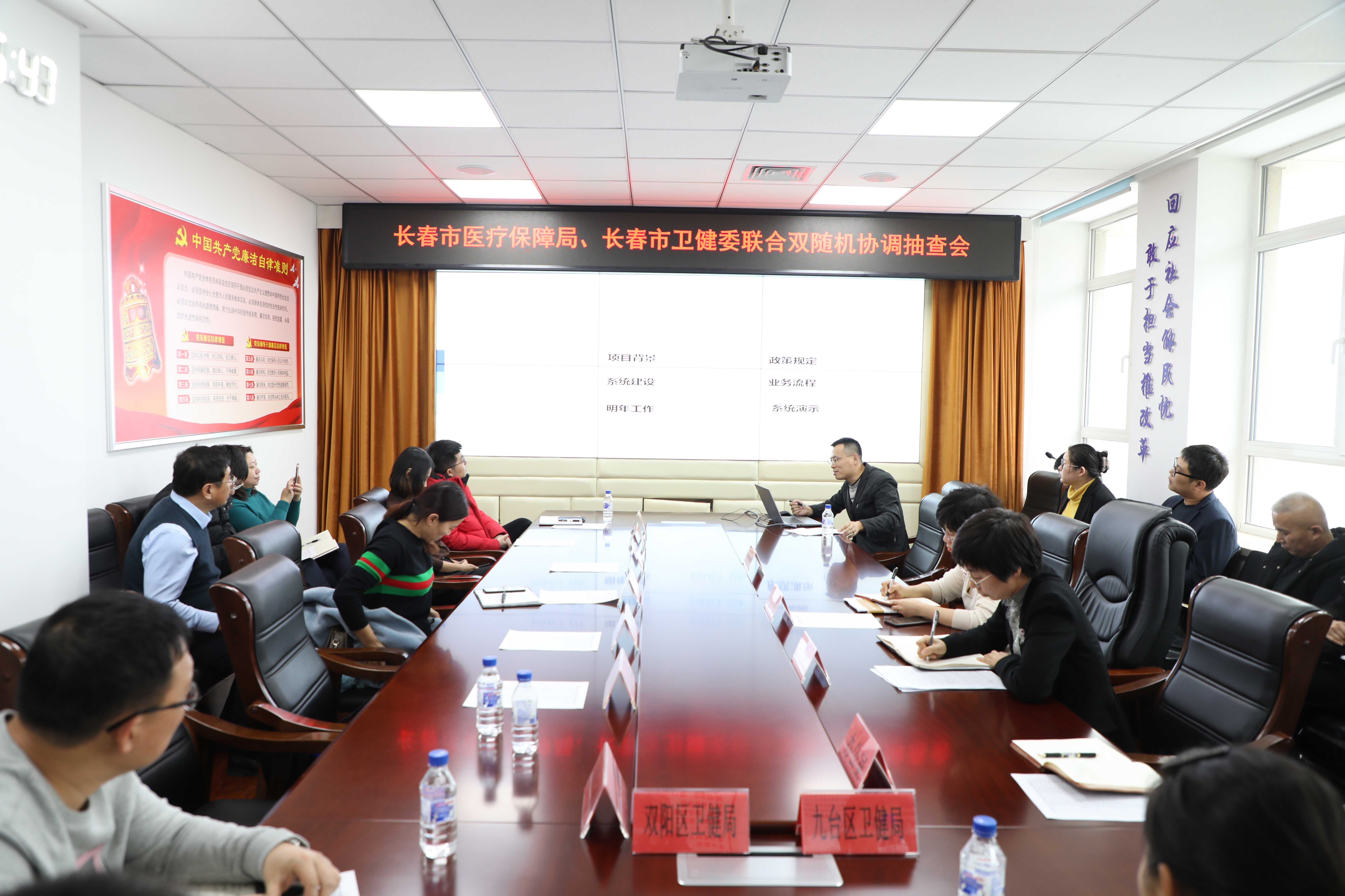 对医保定点医疗机构中医和精神病诊疗项目开展的部门联合双随机抽查,是市医疗保障局集中组织开展的首次跨部门联合行动。长春市医疗保障局高度重视,组织召开部门联合双随机抽查工作协调会,现场抽取任务,生成被检查对象;并邀请市市场监管局信用监督处到会,就相关政策和操作流程进行培训和现场指导。市医疗保障局基金监管处、办公室,各区卫健委、各城区医保分局参加了会议。
